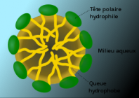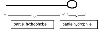 Ces tensioactifs sont des molécules amphiphiles, c'est-à-dire qu'elles possèdent une tête polaire hydrophile, qui est donc dirigé vers le solvant (l'eau), et une chaine hydrophobe (la chaine carbonée) dirigée vers l'intérieur. Ils servent à stabiliser l'émulsion2 entre les deux phases.