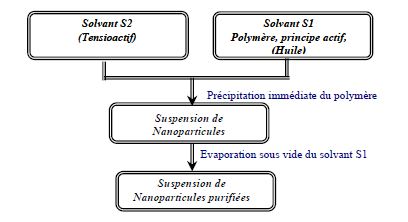 La plus simple est peut-être celle par nanoprécipitation, décrite par les schémas suivant: